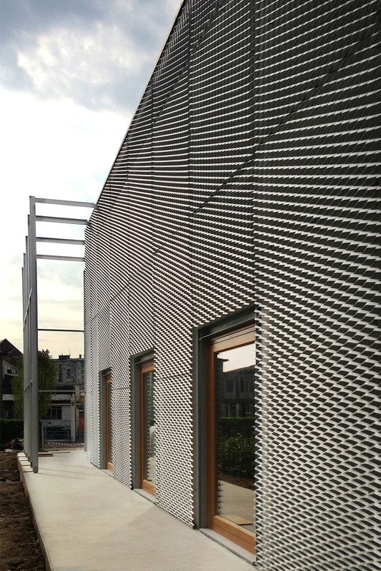 The expanded metal panels can be put into a L-shaped frame covering the expanded metal side.