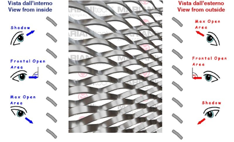 Install a shading means using an item that gives the possibility of shielding all or part of the passage of sunlight while allowing the passage of air. Expanded metal is by nature a material that contains these two features, while having the advantage of being able to add an aesthetic and architectural value to each application.